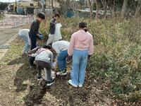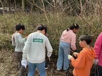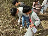 当日は,正門チームと西門チームの二手に分かれ,活動しました。どちらのチームも最初はあまりゴミが見つからず…と思っていたら,木の葉の下や石の間にお菓子の包み紙やたばこのフィルター,紙の切れ端,プラスチックのかけらなどがどんどん見つかりました。目が慣れてくると,落ち葉や枯れ枝の下に缶やビンが出てくる出てくる。軍手やトング,割りばしなどを使って衛生に注意しながら,一生懸命活動しました。