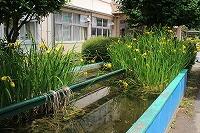 写真はビオトープのきれいな花と学校探検の校長室の様子です