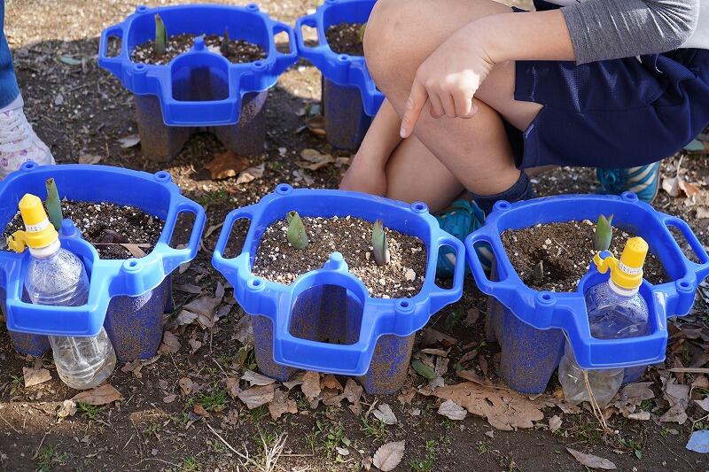 写真は校庭の白連や1年生の植えたチューリップ球根の芽です。