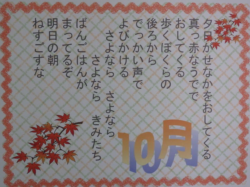 10月は、全校朝会、2年生校外学習、授業参観、柏市陸上競技大会、柏市音楽発表会、3年防災スクール、4年移動教室、ジュニア救命士講習、3年校外学習、給食試食会、4年校外学習などがあり、普段の授業以外の学習や活動が多くありました。