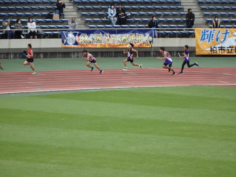 柏市陸上競技大会では、選手のみんなが、練習の成果を発揮していました。競技を終えた選手達は、喜びや悔しさをそれぞれ感じていましたが、精一杯取り組んだことは素晴らしいことです。今年度は、入賞者も多く、学校で応援していた子ども達も大喜びの1日でした。
