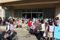 当初の予定では入学式の予定でしたが,延期となり教材の配付になりました。