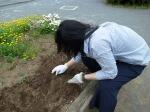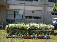 校ていがわの花だんに、ヒマワリのたねをまきました。