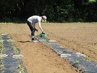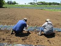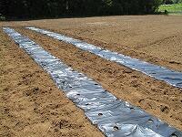 ざっ草がはえてこないように マルチシート(黒いビニール)をかぶせます。