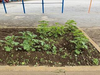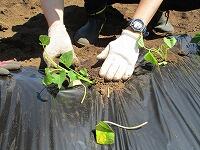 生かつかの べんきょうで サツマイモの なえを200本うえました。