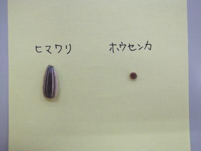 しゅくだいのふうとうの中に、ヒマワリとホウセンカのたねをいっしょに入れてあります。