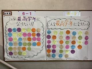 学年掲示板には,みなさんが昨年度末に書いた『最高学年に向けた決意』を掲示しました。
