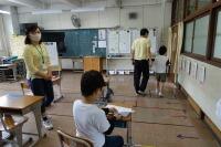 手の洗い方がみんな上手になっていました。トイレや水飲み場もソーシャルディスタンスを保てるようにしるしを付けておきました。