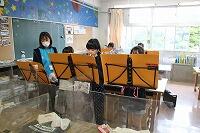 ブラスバンド部が再開されました。夏に県のコンクールがあるため感染予防に注意しながらの再開です。
