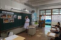 今日の昼食は全校でお弁当です。本当は運動会の代休でしたが、まん延防止等予防措置が延期されたため、月曜日が登校になりました。