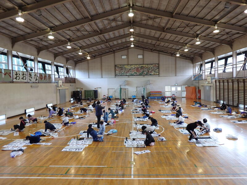 1年・2年は硬筆、3年から6年までは毛筆で、校内書き初め大会を実施しました。12月に習字の先生に指導してもらった3年から6年生までは、体育館で行いました。練習の時とは、雰囲気が違いピリッとした緊張感が漂っていました。