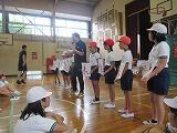 千葉ジェッツふなばしのスタッフの方4名にお越しいただき,5年生がバスケットボール教室を行いました。