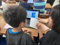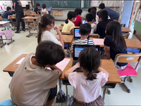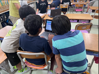 初めて使うプレゼンテーションアプリ「canva」の使い方は5年生が上手に教えてくれました。3年生が1人でも使えるようにと操作は3年生に,5年生は横で寄り添いながら丁寧に教えました。上級生として優しく,頼もしい5年生の姿が見られました。