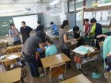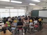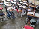 地震の放送が入ると,素早く机の下に潜り一次避難をしていました。