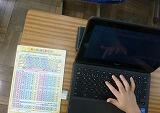 タブレットのキーボードを見ながらしてされた文字の入力を頑張っていました