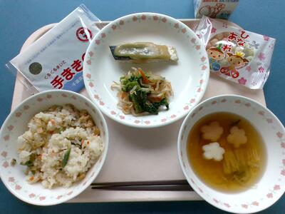 一覧へ 桃の節句献立 日時 2026年03月03日(火) 公開対象 給食室から 詳細 牛乳 手巻きちらし 鰆のゆず味噌かけ 菜の花のお浸し 花形しんじょうのすまし汁 ひなあられ 桃の節句献立です。子どもたちの健やかな成長と幸せを願って作りました。千葉県の県花でもある旬の「菜の花のお浸し」と「花形しんじょう」,「ひなあられ」でひな祭りをお祝いします。「しんじょう」とは,イトヨリダイのすり身と長芋を加えて作る日本伝統的な練り物です。 作成者 藤心小学校管理者 更新日時 2026-03-03 12:09:30