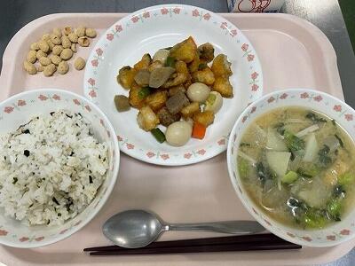 一覧へ 今日の給食 日時 2023年04月20日(木) 公開対象 給食室から 詳細 ・牛乳 ・わかめごはん ・たらとごぼうの旨煮 ・ごま仕立てのみそ汁 ・ふくふく豆 今日は,1年生初めての和風メニューでした。みなさん箸を上手に使って食べることができていました。6年生はいつも準備や片付けが早く,ふじっこの良いお手本になっています。 作成者 藤心小学校 更新日時 2023-04-21 14:57:34