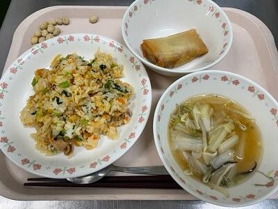 一覧へ 今日の給食 日時 2023年06月28日(水) 公開対象 給食室から 詳細 ・牛乳 ・キムチチャーハン ・手作り春巻き ・中華トックスープ ・いり大豆 作成者 藤心小学校 更新日時 2023-07-03 11:28:33
