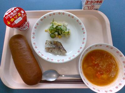 一覧へ ミネストローネ 日時 2026年02月25日(水) 公開対象 給食室から 詳細 牛乳 黒糖パン 鱈の香草焼き 白菜とコーンのサラダ ミネストローネスープ ヨーグルト 「ミネストローネ」とは,イタリア語で具沢山のスープを意味します。給食では,トマトベースのスープが多いですが,地域や家庭によって様々なバリエーションが存在するようです。 作成者 藤心小学校管理者 更新日時 2026-02-25 12:08:07