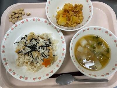 一覧へ 今日の給食 日時 2023年06月06日(火) 公開対象 給食室から 詳細 ・牛乳 ・かしわ寿司 ・じゃが芋のそぼろ煮 ・ゴロゴロかぶとキャベツのみそ汁 ・ふくふく豆 作成者 藤心小学校 更新日時 2023-06-07 10:32:35
