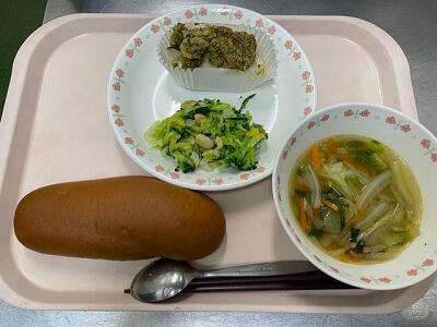 一覧へ 今日の給食 日時 2023年04月13日(木) 公開対象 給食室から 詳細 ・牛乳 ・黒パン ・メルルーサの香草マヨネーズ焼き ・グリーンサラダ ・白菜とベーコンのスープ 今日は白身魚のメルルーサにパセリやロリエ,パン粉,マヨネーズを混ぜたソースを乗せて焼きました。 洋風の味付けになっていて魚が苦手な人も食べやすかったのではないでしょうか。 作成者 藤心小学校 更新日時 2023-04-14 09:30:34