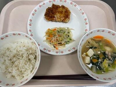 一覧へ 今日の給食 日時 2023年06月01日(木) 公開対象 給食室から 詳細 ・牛乳 ・ごはん ・油淋鶏 ・もやしと春雨のサラダ ・ピリ辛中華スープ 作成者 藤心小学校 更新日時 2023-06-02 12:25:39