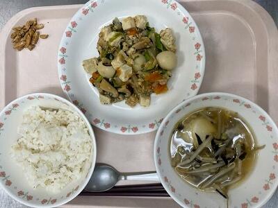 一覧へ 今日の給食 日時 2023年05月24日(水) 公開対象 給食室から 詳細 ・牛乳 ・ごはん ・豆腐の中華煮 ・中華トックスープ ・黒糖アーモンド 作成者 藤心小学校 更新日時 2023-05-25 11:54:38