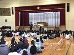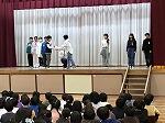 全校朝会では、初めに、千葉県小・中・高校書き初め展覧会の表彰を行いました。