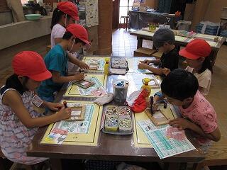午後はクラフトゾーンの陶芸のアトリエで,タイルアートに挑戦しました。様々な色や形のタイルを張り付け,自分だけの写真立てを作成しました。どの児童も真剣に作成に取り組み,個性豊かな作品を作ることができました。