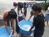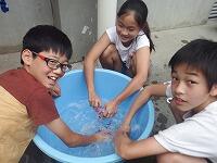 午前中は芝生広場でグループごとに分かれて遊び,巨大遊具や水を使った遊具で楽しみました。グループのメンバーで声を掛け合い,ルールを守って仲よく遊ぶことができました。