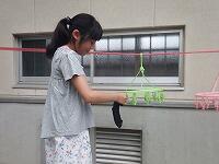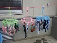 洗濯実習では、学習した内容を生かして、実際に自分の靴下を手洗いしました。もみ洗いやつまみ洗いをすると、汚れがよく落ちることに気がつき、丁寧に洗っていました。