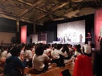 本日、全国各地で公演されているトム・プロジェクトの方々が来校され、「だいだいの空」を上演していただきました。体育館に作られた大がかりなセットに、上演前から子ども達の目はきらきら輝いていました。劇には花野井小学校の3年生も役者として参加し、笑いあり感動ありと大いに盛り上がりました。子ども達にとって、とても貴重な体験となりました。