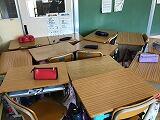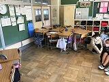 本日,避難訓練(不審者対応訓練)を実施しました。感染予防のため,各教室での1次避難のみ行いました。不審者が校内に侵入したことを想定し,バリケードを作り,いざという時の対応について訓練しました。
