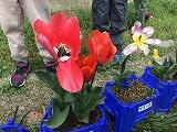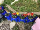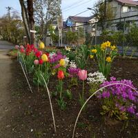 2年生が1年生の時に植えた球根がきれいに咲きました。春休みが明けて大きく咲いた花を見て,喜びの声を上げる児童が多く見られました。お友達の咲いたお花にも関心をもち,それぞれの鉢植えが色とりどりに咲きとてもきれいです。