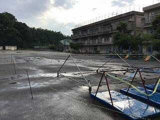 本日,運動会の前日準備をお願いしました。1~4年生は,4時間目で下校する中,6年生が運動会の準備を頑張ってくれました。また,6年生が下校した後は,職員で準備をしました。あいにくの大雨だったので,残りは明日の朝職員で準備をします。明日は,これまでの練習の成果を充分に発揮してくれると期待しています。