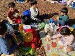 半分ほど歩いてまわったら、お待ちかねのお弁当& おやつタイムです。暖かい日差しの下で、 レジャーシートを広げて食べるお弁当は美味しいですね。