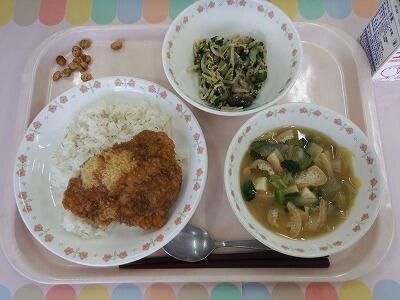 一覧へ 【福井県】ソースカツ丼 日時 2026年01月27日(火) 公開対象 給食室より 詳細 牛乳 ソースカツ丼 きのこ入りごまあえ 白菜のみそ汁 カレー大豆 今日は福井県、福島県、群馬県などで親しまれているソースカツ丼です。 カツ丼といえば、カツを卵でとじた料理をイメージしますが、ソースカツ丼はウスターソースをベースにしたタレにくぐらせます。甘めのソースがカツとごはんによく合います。 作成者 花野井小学校管理者 更新日時 2026-01-27 11:56:13