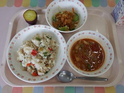 一覧へ ツナピラフ 日時 2026年02月20日(金) 公開対象 給食室より 詳細 牛乳 ツナピラフ パリパリサラダ ミネストローネスープ 焼き芋 スチームコンベクションオーブンを使って焼き芋を焼きました。シルクスイートという品種のさつま芋を低温で1時間以上かけてじっくり火を通し、甘味を引き出しました! もう少しねっとりとした仕上がりを目指していたので、次回はさらに焼き時間や温度を調整して作りたいと思います。 パリパリサラダはワンタンの皮を油で揚げてサラダにトッピングしました。 作成者 花野井小学校管理者 更新日時 2026-02-20 11:57:03