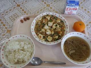 一覧へ 麻婆豆腐 日時 2023年12月08日(金) 公開対象 給食室より 詳細 牛乳 ごはん 麻婆豆腐 春雨スープ みかん アーモンド 作成者 花野井小学校管理者 更新日時 2023-12-08 13:42:07