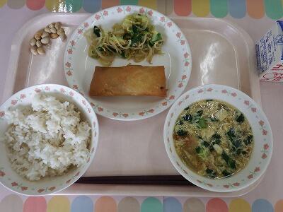 今日は6年生リクエスト献立のツナとチーズの春巻きです。主菜部門の一位でした。