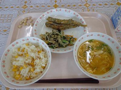 一覧へ 今日の給食 日時 2024年07月03日(水) 公開対象 給食室より 詳細 牛乳 とうもろこしごはん ししゃもの磯辺揚げ きのこ入りのり和え 絹さやと卵のみそ汁 いり大豆 作成者 花野井小学校管理者 更新日時 2024-07-03 11:45:43
