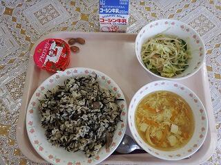一覧へ ひじきチャーハン 日時 2023年11月22日(水) 公開対象 給食室より 詳細 牛乳 ひじきチャーハン 春雨サラダ 中華卵スープ アセロラゼリー アーモンド 作成者 花野井小学校管理者 更新日時 2023-11-24 11:54:54