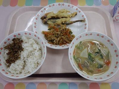 一覧へ ししゃものみのむし揚げ 日時 2025年11月25日(火) 公開対象 給食室より 詳細 牛乳 ごはん 手作りかぶの葉ふりかけ ししゃものみのむし揚げ 切干大根の旨煮 豆乳入りかぶのみそ汁 作成者 花野井小学校管理者 更新日時 2025-11-26 11:49:30