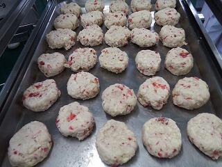 そして、今が旬のいちごを使ったスコーンを提案してくれました。スコーンは給食でも登場しますがいちご味は初めてです。