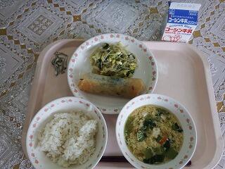 一覧へ 手作り春巻き 日時 2023年02月24日(金) 公開対象 給食室より 詳細 牛乳 ごはん 手作り春巻き ナムル 中華卵スープ 小魚 作成者 花野井小学校管理者 更新日時 2023-02-24 13:15:07
