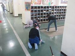 学校では、ぞうきんがけレースみたいに走らず、「ワイパーぶき」をするんだよ。