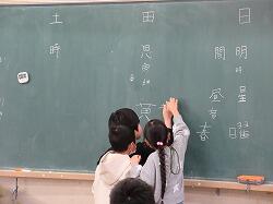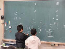2年国語「組み合わせでできている漢字」、今日は「日・田・土」の入った漢字をさがしたよ。
