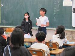 6年生が、入学式の歓迎のあいさつの練習をしているよ。