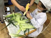 一枚一枚丁寧に剥く姿もあれば、トウモロコシのひげをもって豪快に剥く姿もあったりと、どの児童も皮むきに真剣に取り組んでいました。
