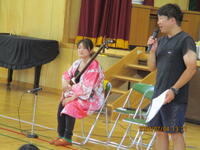 4年生は、音楽の学習で、津軽三味線を聴く会をしました。
